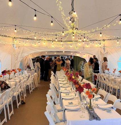 When the marquee tent is in place, 100 people can be seated in this 1200 sq. ft. area, and with another 1220 sq. ft. in the Main Room, there is plenty of space for music and dancing!